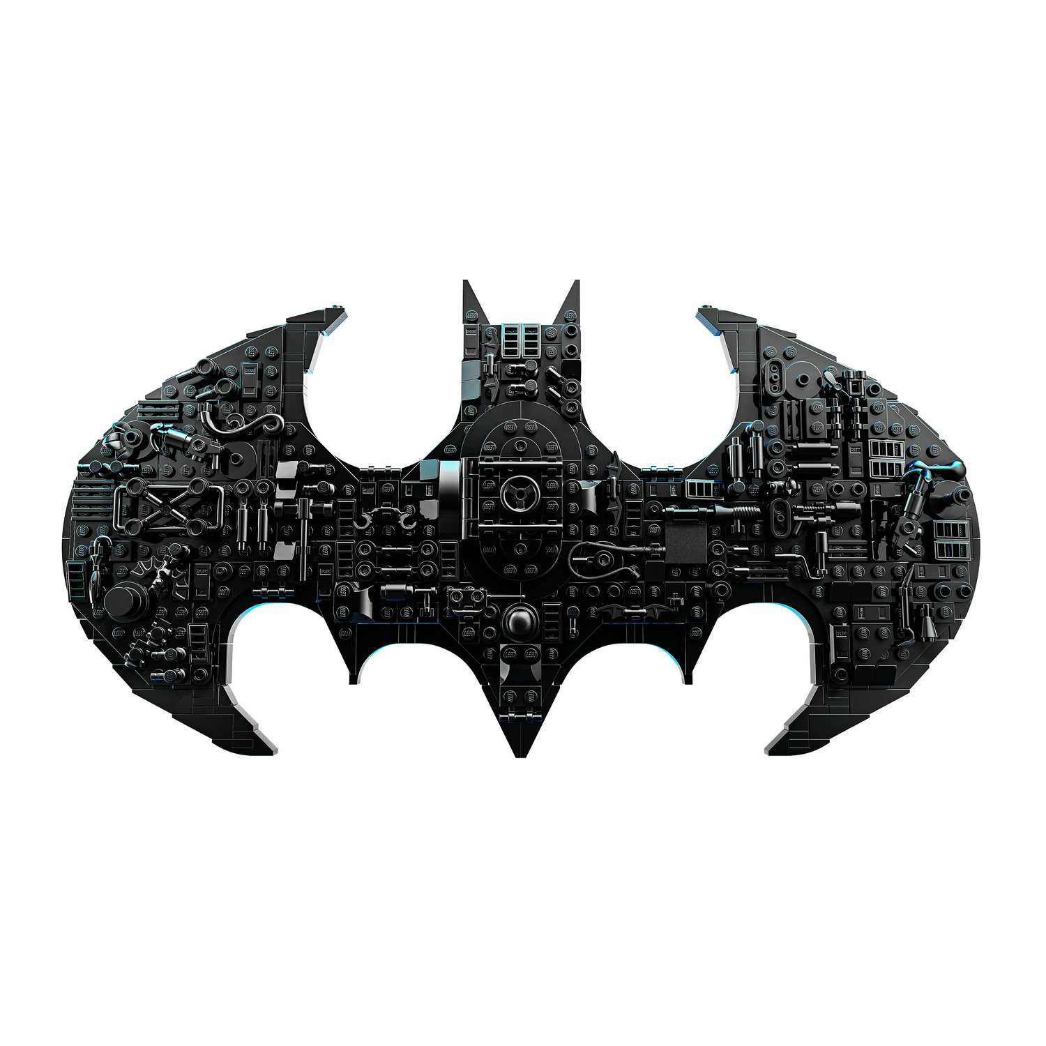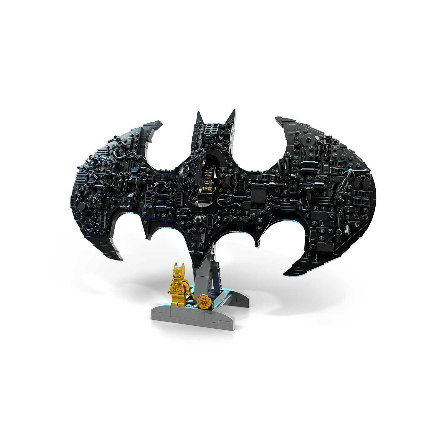 Ovo nije samo logotip Batmana™, on krije priču koja čeka da je složiš! Dodaj fora predmete iz DC-jeva svijeta, kao što su Batarang™ i čekić Harley Quinn™, da pošalješ prepoznatljivi Bat-Signal™. Stavi zlatnog obljetničkog Batmana na postolje pa otvori vratašca da pronađeš klasičnu figuricu Batmana. Poslije možeš skinuti model s postolja i staviti ga na zid da ga svi vide.